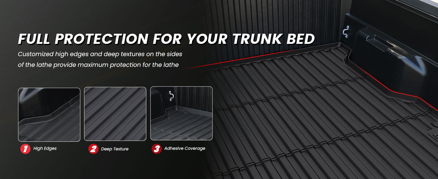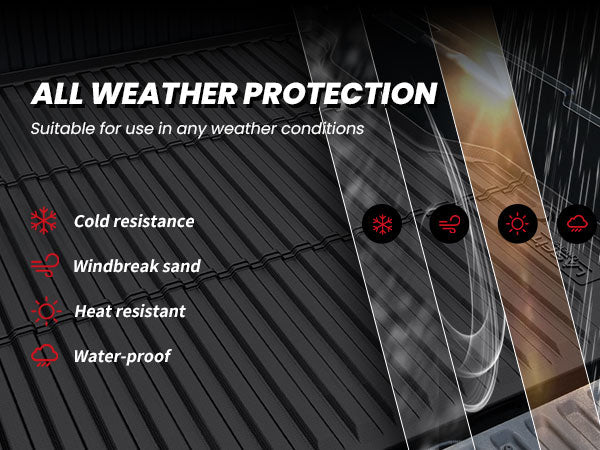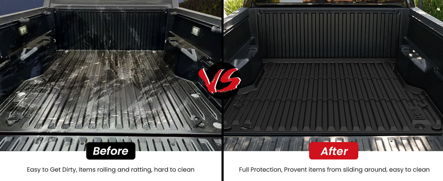 Built to withstand extreme temperatures ranging from -13℉ to 167℉, Lasfit tacoma bed liners offer exceptional defense against rain, snow, mud, and slush. Their waterproof, stain-resistant, and anti-slip properties keep your truck bed clean and dry, whether you’re facing harsh winter weather or summer heat.