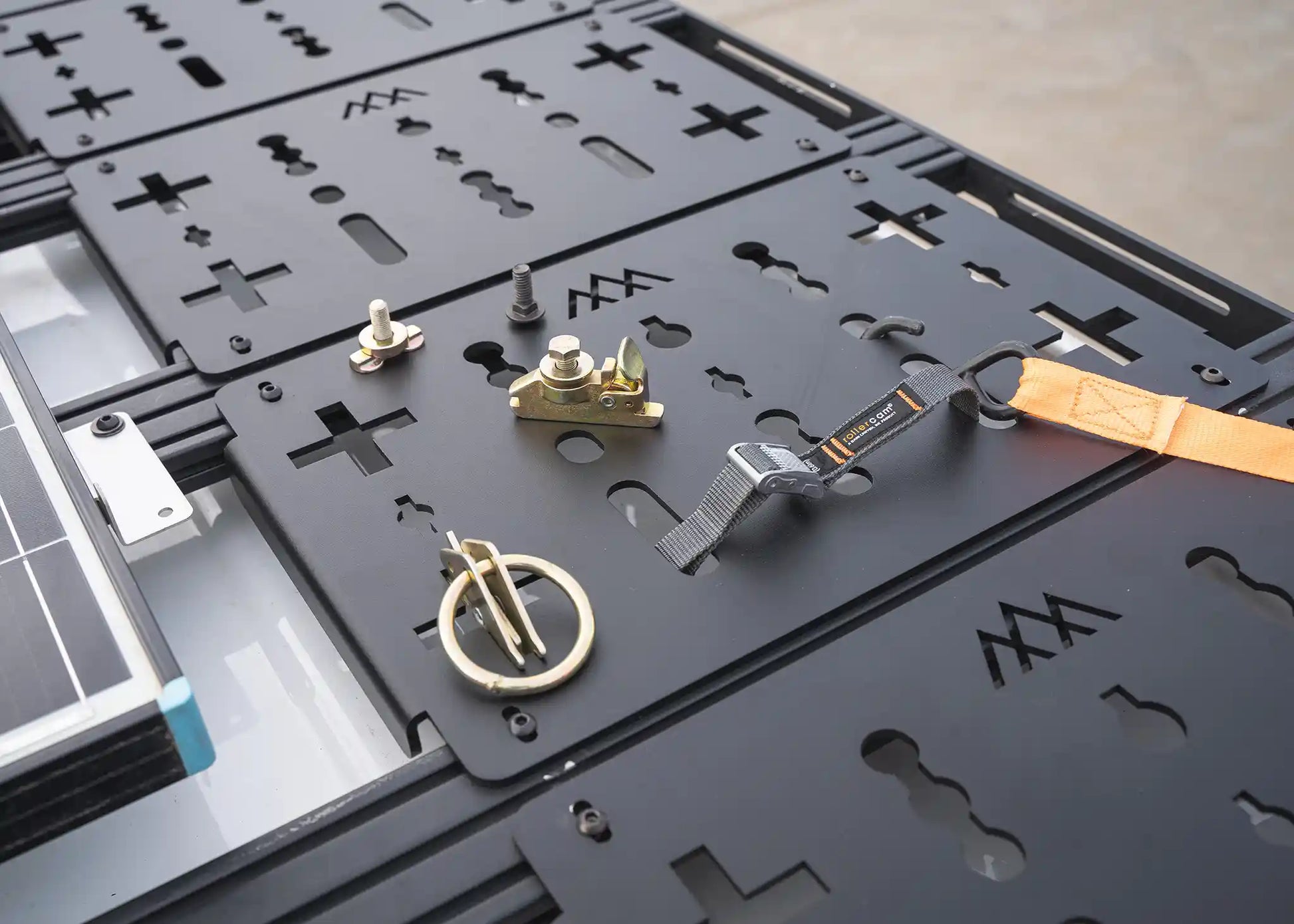 We've incorporated very specific and intentional cutouts in order to accept some of the most widely used universal mounting systems including, L-Track, E-Track, common sized carriage bolts, and more. We have created these mounting points to all be top faced - meaning everything can be fastened and secured from the top. No more reaching under the roof rack crossbars or wedging your hand under the roof rack to mount your gear. Our variety of universal cutouts allows you to attach and detach your gear instantly.