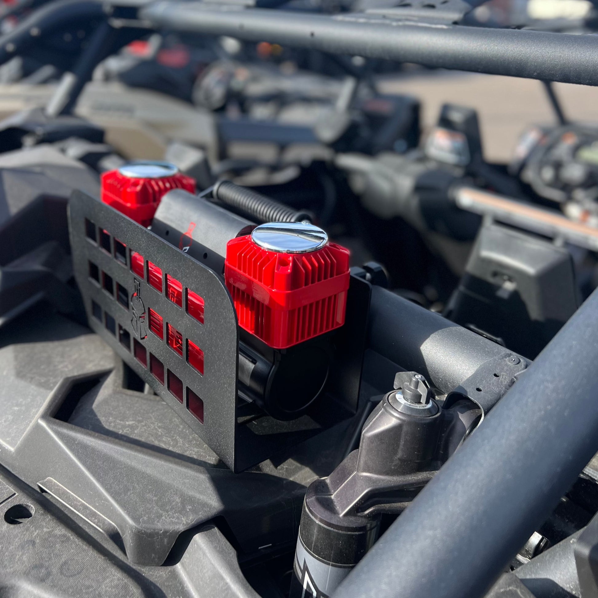 Why Add the Thor's Lightning Refuge MOLLE Portable Air Compressor Mount for SxS/Can-Am/Polaris? This patent-pending Thor's Lightning Refuge MOLLE Air Compressor Mount for SxS (side-by-side) applications is incredible! Simply mount to the rollbar on your Can-Am X3/Polaris RZR SxS and hardwire the compressor of your choice into the electrical system. Includes a 3-year warranty against manufacturing defects.